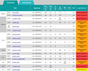 สารมลพิษทางอากาศที่ตรวจพบเกินมาตรฐานได้แก่ ฝุ่นละออง ขนาดไม่เกิน 2.5 ไมครอน (PM2.5) ตรวจพบค่าระหว่าง 41 – 300 ไมโครกรัมต่อลูกบาศก์เมตร (µg/m3) เกินมาตรฐานที่บริเวณ เกินมาตรฐานที่บริเวณต.ในเวียง อ.เมือง น่าน, ต.ห้วยโก๋น อ.เฉลิมพระเกียรติ น่าน, ต.บ้านต๋อม อ.เมือง พะเยา, ต.พระบาท อ.เมือง ลำปาง, ต.สบป้าด อ.แม่เมาะ ลำปาง, ต.บ้านดง อ.แม่เมาะ ลำปาง, ต.แม่เมาะ อ.แม่เมาะ ลำปาง, ต.บ้านกลาง อ.เมือง ลำพูน, ต.เวียง อ.เมือง เชียงราย, ต.เวียงพางคำ อ.แม่สาย เชียงราย, ต.ช้างเผือก อ.เมือง เชียงใหม่, ต.ศรีภูมิ อ.เมือง เชียงใหม่, ต.สุเทพ อ.เมือง เชียงใหม่, ต.ช่างเคิ่ง อ.แม่แจ่ม เชียงใหม่, ต.นาจักร อ.เมือง แพร่, ต.จองคำ อ.เมือง แม่ฮ่องสอน