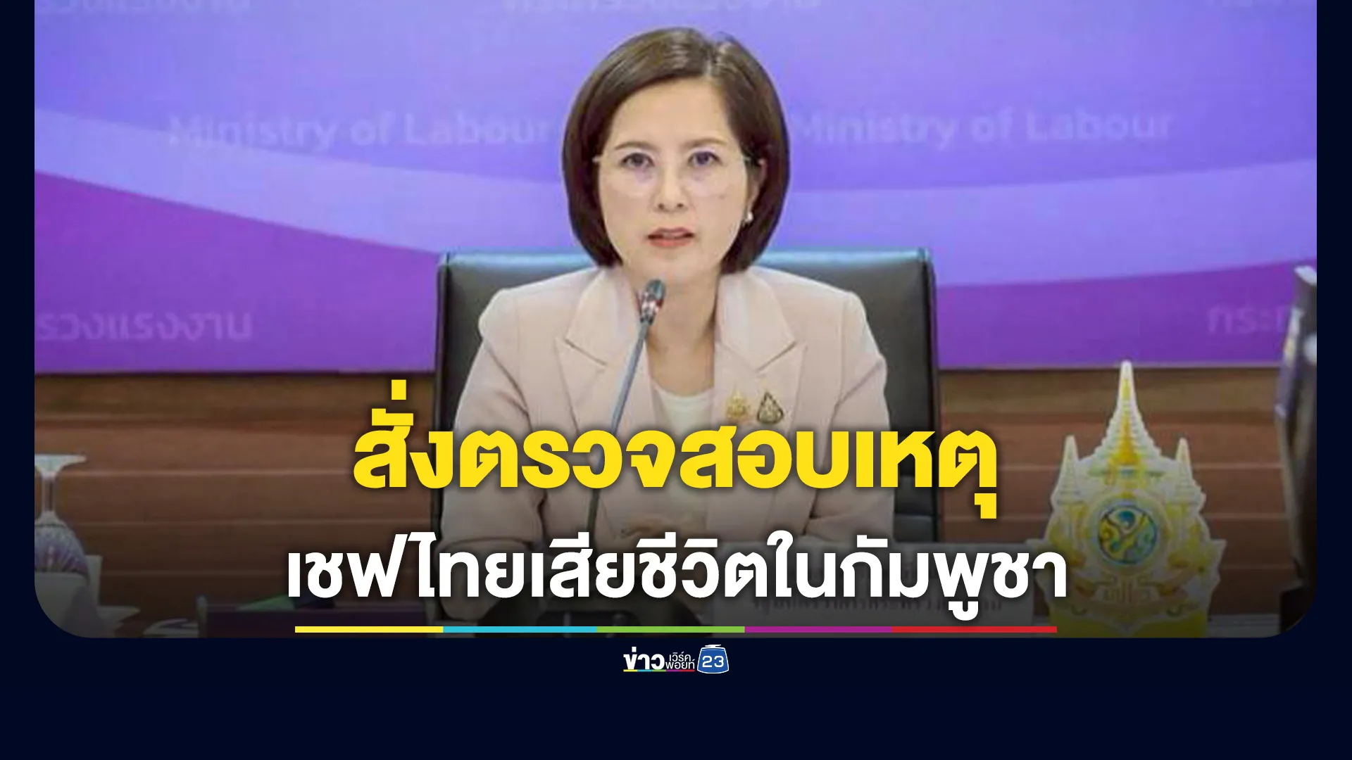 “ตรีนุช” สั่งตรวจสอบเหตุเชฟไทยเสียชีวิตในกัมพูชา เร่งคุ้มครองสิทธิแรงงานไทยในต่างแดน